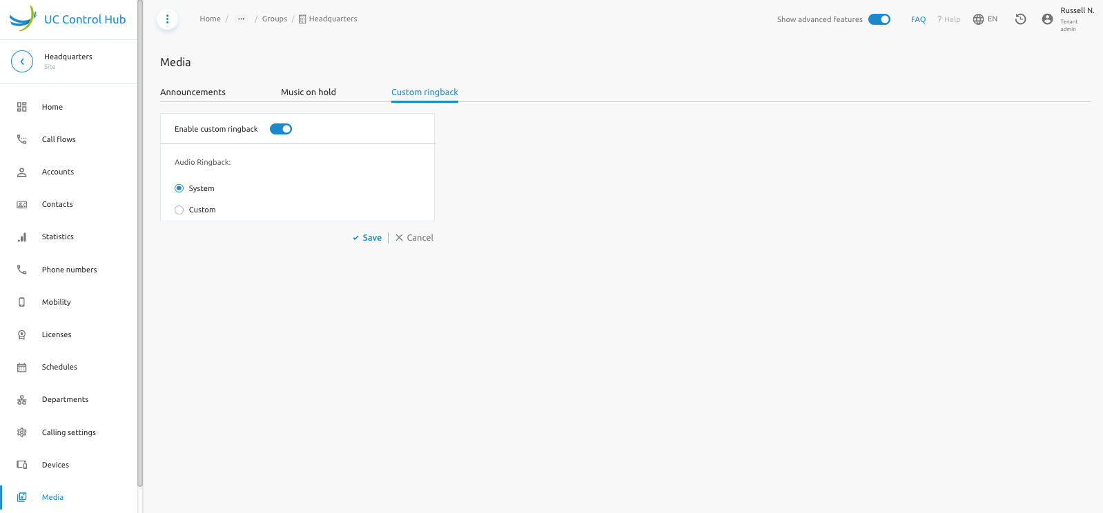 Custom Ringback Group support configuration is now supported for System, Enterprise and Group Administrators. Custom Ringback Group service needs to be assigned to a Service Pack or as individual service to the Group/Site
