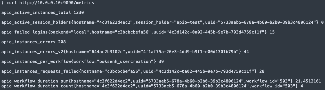 - Southbound Integrations and Internal Prometheus formatted metrics refer to APIO Docs for more information