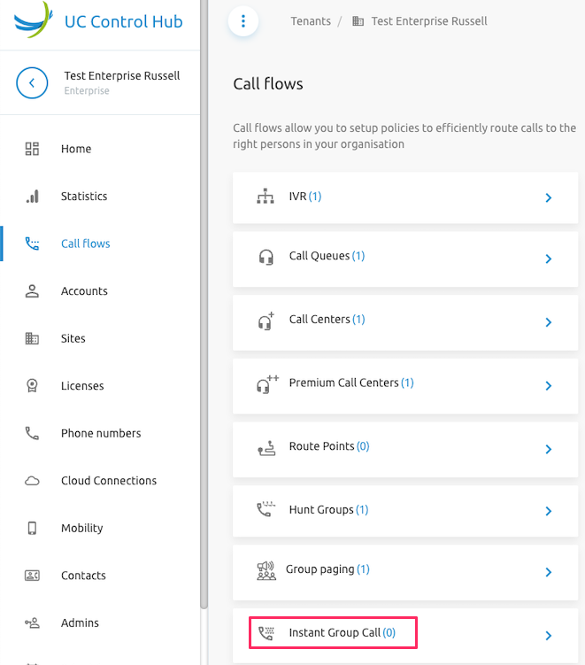 BroadWorks Instant Group Call configuration is now supported for System, Tenant and Group Administrators.